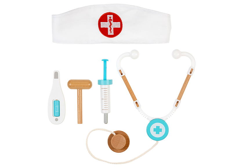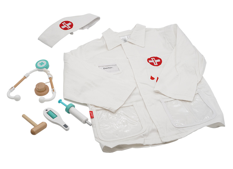 | Samenstelling | Jas, spuit, hamer, thermometer, stethoscoop. |