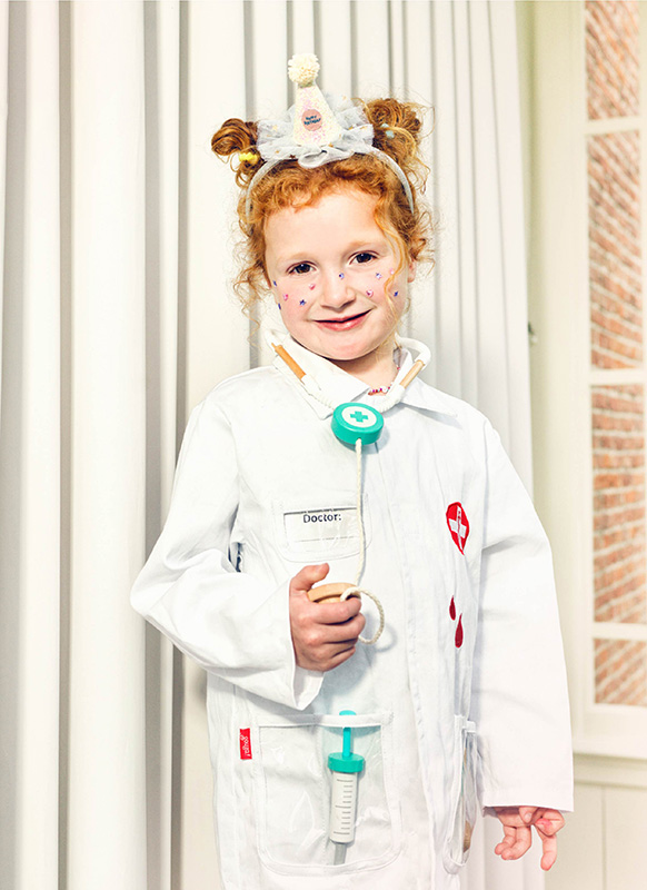 Trek de witte jas aan en speel dokter! Met deze Souza verkleedset verzorg je knuffels, controleer je hartjes en geef je pleisters. Spelenderwijs leren helpen en zorgen!
